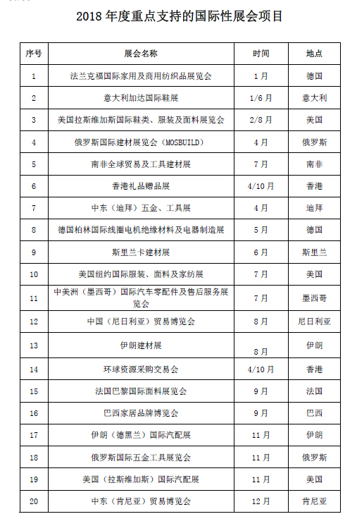 (一)境內(nèi)外參展補(bǔ)貼。對(duì)企業(yè)參加區(qū)級(jí)組織或確認(rèn)的境內(nèi)外出口商品展覽會(huì),給予展位費(fèi)最高100%資助(重點(diǎn)展名錄參照附件1);對(duì)參加經(jīng)主管部門審核通過的其他境內(nèi)外出口展會(huì),給予展位費(fèi)最高70%資助;單個(gè)企業(yè)資助最高不超過30萬元。